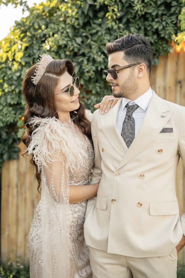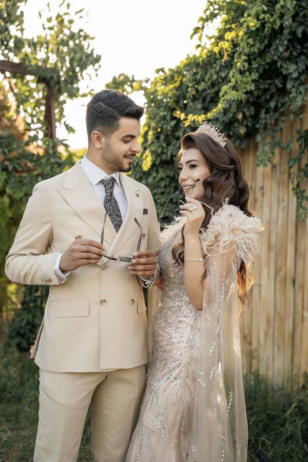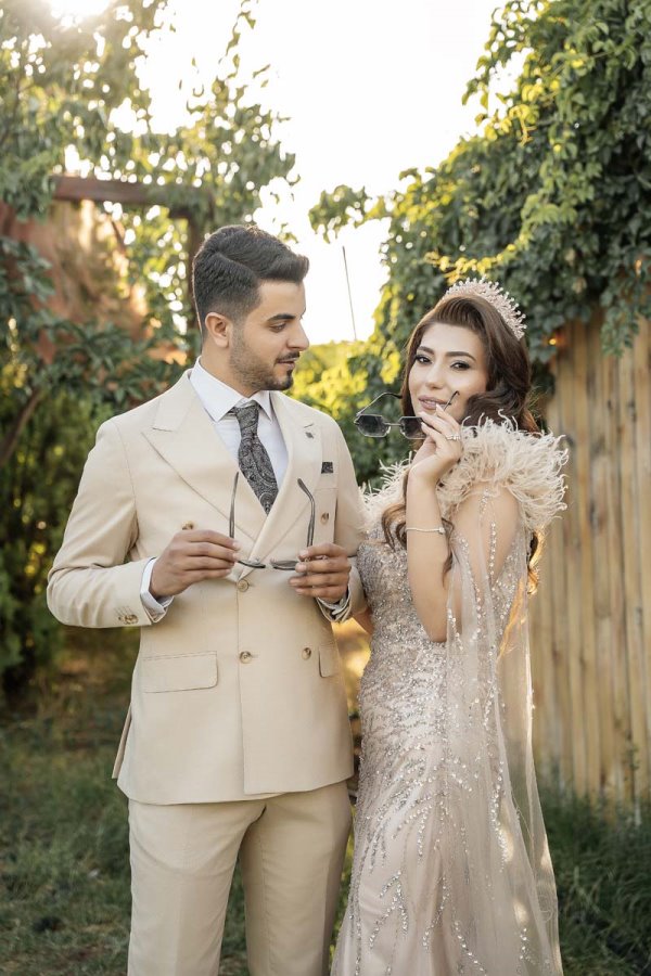Furkan ise zarifliğini abartmadan taşıyanlardan. O gün krem tonlarında, modern çizgilerle seçilmiş bir takım elbise giymişti. Gösterişten uzak ama duruşuyla etkileyici… Özellikle Betül’e her baktığında yüzünde beliren o içten tebessüm, tüm çekimin ruhunu taşıyan detaylardan biriydi.