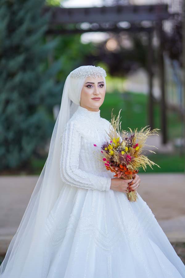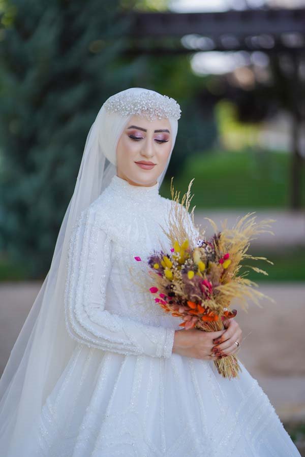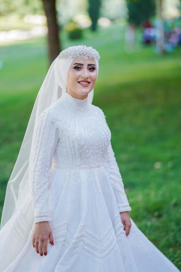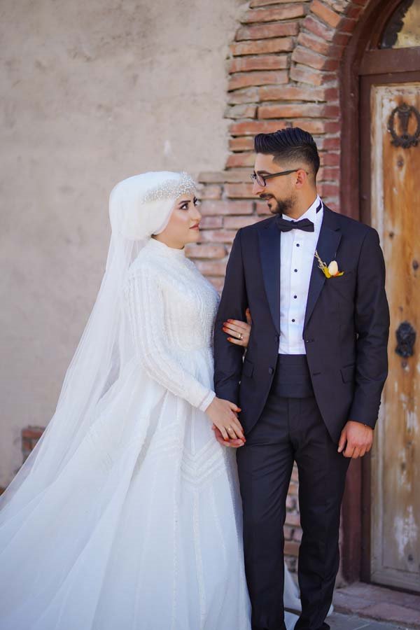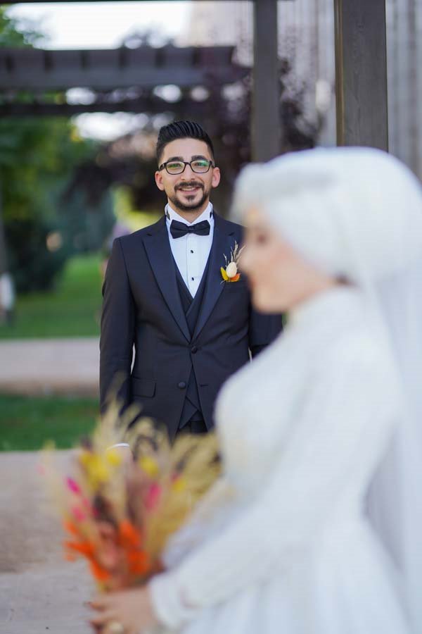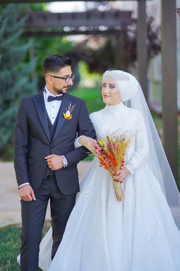 Güzel gelinimiz Reyhan’ın taşlarla bezeli gelinliği hem şık hem de çok zarifti. Yerlere kadar uzanan duvağı, gelinliğini tamamlayan eşarbı ve aksesuarları ile muhteşem görünüyordu. Damadımız Kadir’in siyah takım elbisesi ve papyonu da oldukça şık ve modern görünmesine yol açmıştı.